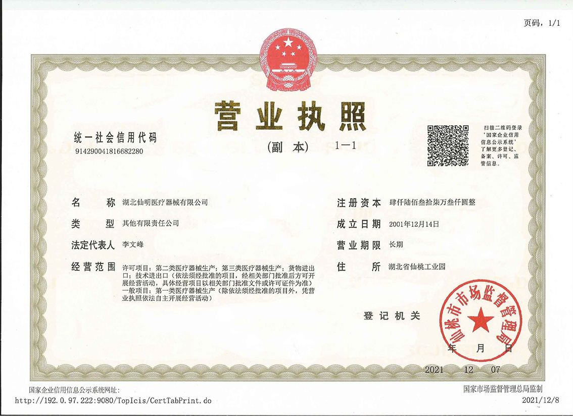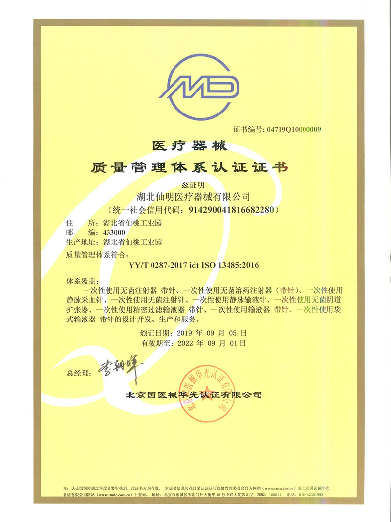 本公司已通過SO13485體系認(rèn)證。近幾年獲得的各項(xiàng)榮譽(yù)有∶全國質(zhì)量穩(wěn)定合格產(chǎn)品、湖北省著名商標(biāo)、湖北省守合同重信用企業(yè),湖北省著名企業(yè)、湖北省最佳創(chuàng)新型民營企業(yè)、仙桃市知名商標(biāo)等榮譽(yù)。